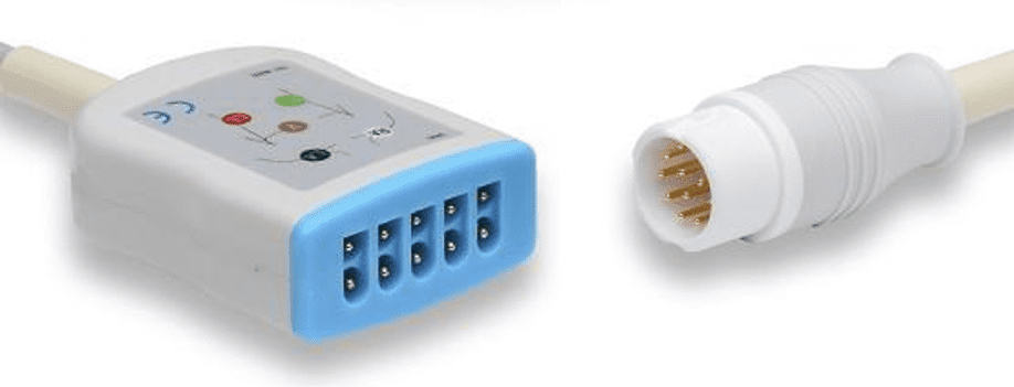 ECG Trunk Cable; OEM Compatible Philips x GE Connectors; 3/5 Lead; 1′ Long; Ref 2090100-051
