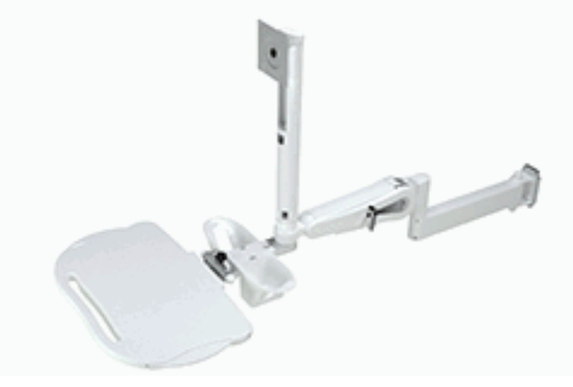 Falcon IT Station; White; Std Keyboard; Barcode Scanner Holder; Folding 12″ Extension; 13-15.5lb Spring