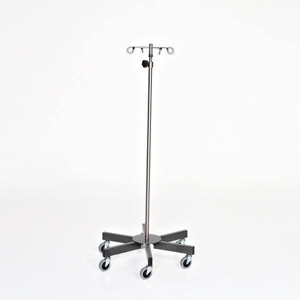 SS IV Pole W/4 Hook Top, No Lose Thumb Knob, 6-Leg 24″dia. Base