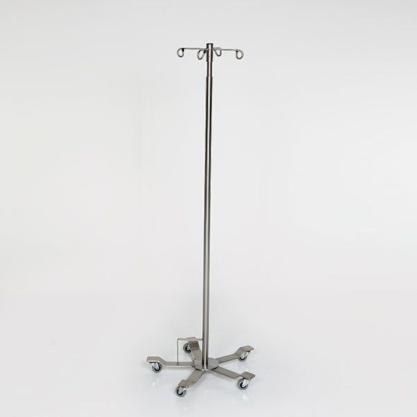 SS Foot Controlled IV Pole, 5-Leg 22″dia. Base, 4 Hook Top